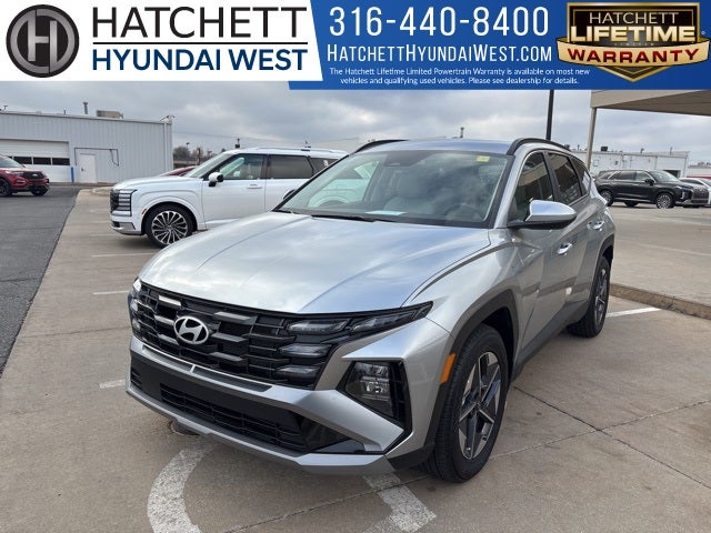 2025 Hyundai Tucson SEL Shimmering Silver 8-Speed Automatic with SHIFTRONIC For sale at Hatchett Hyundai West in Wichita Kansas. **Multi Point Inspection and all Necessary Maintenance & Reconditioning Items Are Performed to Strict Hatchett Standards** Complete Detail of Interior and Exterior. Odometer is 14274 miles below market average! ** Lifetime Warranty, ** No Accidents, ** One Owner, ** Local Trade-In, ** Backup Camera, ** Bluetooth® Connectivity, ** Apple CarPlay/Android Auto, ** Proximity Key w/Push Button Start, ** Wireless Phone Charging, ** Automatic Headlights, ** Power Drivers Seat, ** Heated Front Seats, ** Forward Collision-Avoidance Assist w/Pedestrian Detection, ** Blind Spot-Collision Avoidance Assist, ** Rear Cross-Traffic Collision-Avoidance Assist, ** Smart Cruise w/Stop N Go, ** Lane Keep Assist, ** Sirius XM Radio Capable, ** Power Liftgate, Option Group 01.