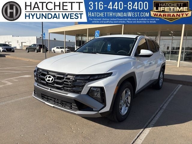 2025 Hyundai Tucson SE White Pearl 8-Speed Automatic with SHIFTRONIC For sale at Hatchett Hyundai West in Wichita Kansas. **Multi Point Inspection and all Necessary Maintenance & Reconditioning Items Are Performed to Strict Hatchett Standards** Complete Detail of Interior and Exterior. Odometer is 2370 miles below market average! ** Lifetime Warranty, ** No Accidents, ** One Owner, ** Local Trade-In, ** Backup Camera, ** Bluetooth® Connectivity, ** Apple CarPlay/Android Auto, ** Proximity Key w/Push Button Start, ** Automatic Headlights, ** Forward Collision-Avoidance Assist w/Pedestrian Detection, ** Blind Spot-Collision Avoidance Assist, ** Rear Cross-Traffic Collision-Avoidance Assist, ** Remote Start, ** Sirius XM Radio Capable, Option Group 01.